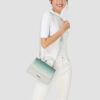 Túi xách trung đơn giản, sang trọng. Túi gồm ngăn lớn trong và ngăn nhỏ bên ngoài có nắp gập. Kích thước lớn tiện dụng để đựng nhiều đồ. Chất liệu da tổng hợp cao cấp, phù hợp với đi làm, đi chơi và đi dự tiệc.